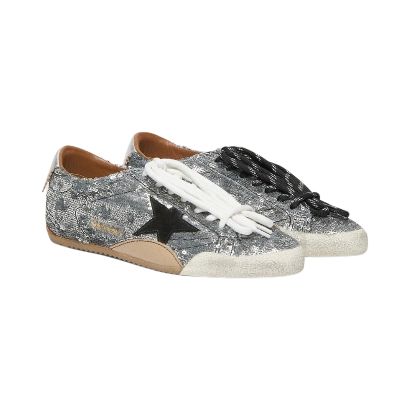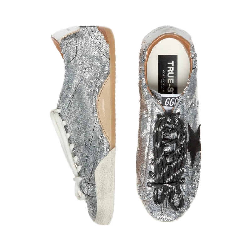 Golden Goose True-Star in silver sequins with black star and silver leather heel tab(Women’s)