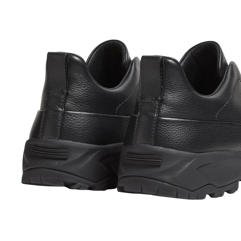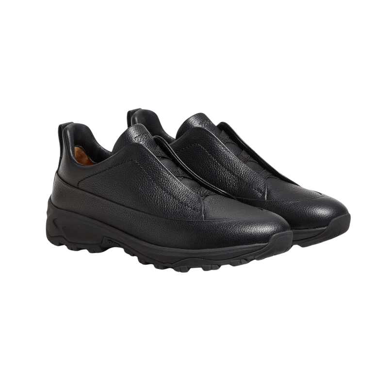 Zegna – Triple Stitch Monte Grained Calf Leather Black Slip On Sneakers